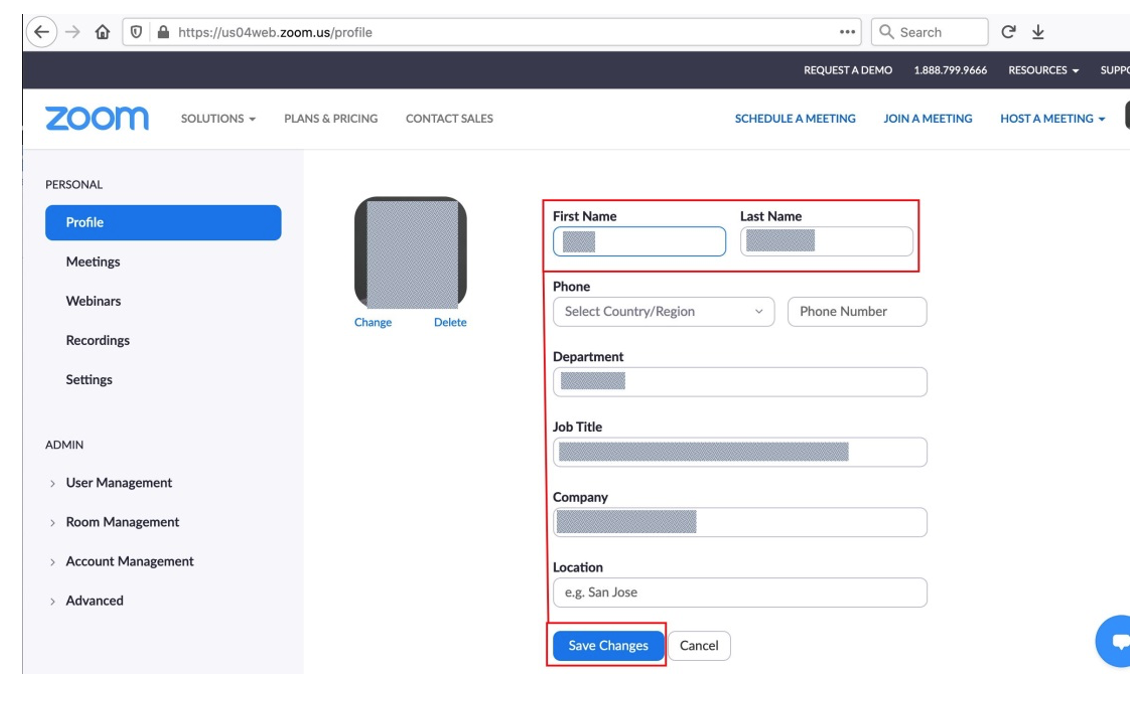 Figure 2. Zoom Profile Edit Screen